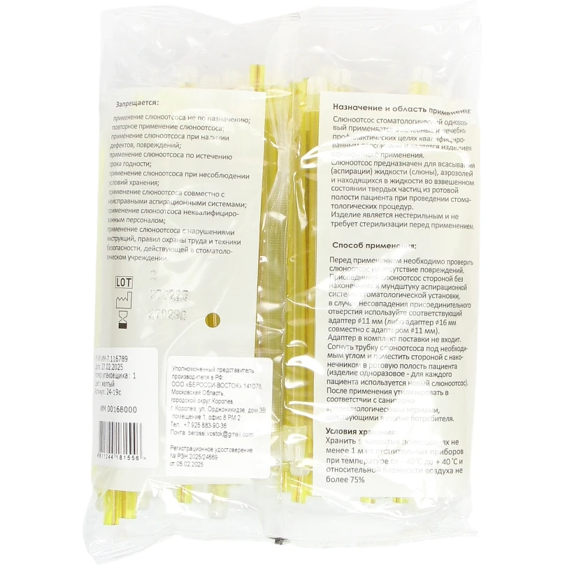 - Слюноотсосы стоматологические одноразовые предназначены для аспирации слюны из полости рта пациента.