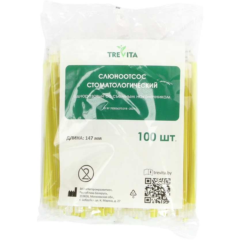 Слюноотсос со съемным наконечником желтый (100 шт) Trevita