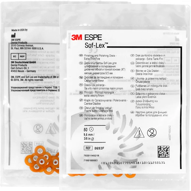 Диски Sof-Lex для шлифования и полирования отлично полируют композиты, в том числе и микрофилы, амальгамы, полудрагоценные и драгоценные металлы. Благодаря своему низкопрофильному дискодержателю и ультратонкой конструкции дисков система Sof-Lex для шлифования и полирования на гибкой и тонкой основе ХТ расширила традиционные области применения шлифовальных дисков, позволяя обрабатывать интраоральные зоны, характеризующиеся ограниченным доступом.Система продемонстрировала высокую эффективность при шлифовании и полировании межзубных промежутков реставраций. Продукция Sof-Lex имеет цветную маркировку от темных тонов (более крупнозернистые абразивы) до светлых тонов (более мелкозернистые абразивы).