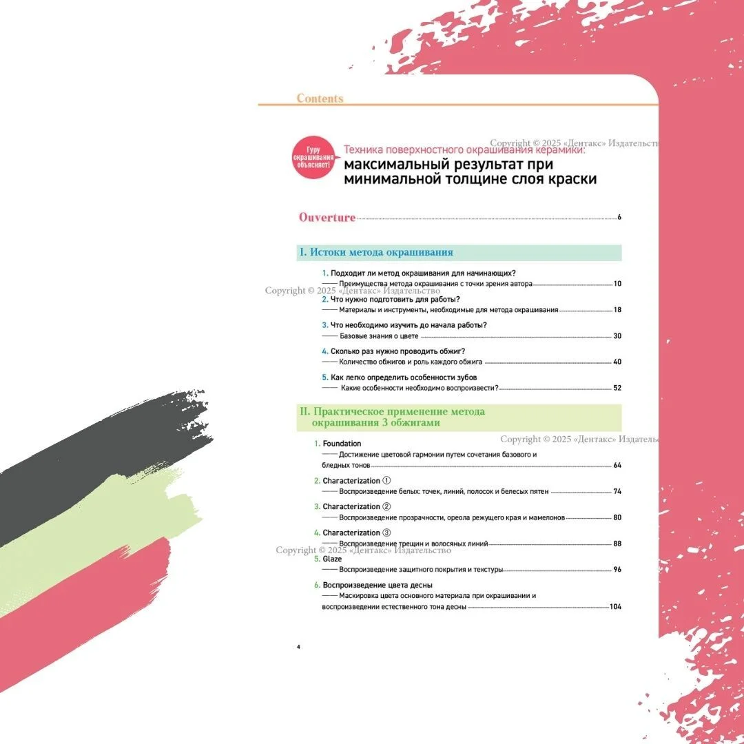 В данной книге «гуру окрашивания» – Ёкота Хирофуми, рассматривает все плюсы и минусы методов наслоения и окрашивания и детально отвечает на вопрос почему в своей практике он предпочитает именно метод окрашивания. В книге представлены практические методики для повседневной клинической практики и более 200 снимков зубов пациентов как для тренировки наблюдательности за естественными зубами с деснами, так и в качестве эталонов при воспроизведении цвета!Содержание