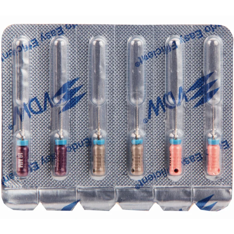 - для механической обработки сильно суженых и кальцинированных корневых каналов: прохождение корневого канала на рабочую длину пилящими и вращательно- режущими (высверливающими) движениями (максимально допустимый угол вращения 90 градусов)
