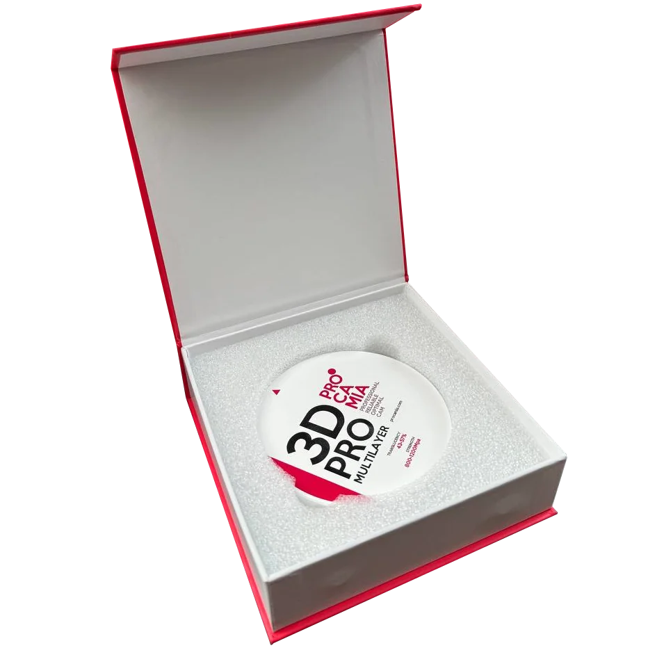 Procamia 3D Pro ML — циркониевый диск суперпрозрачный (от супер- до ультрапрозрачного), многослойный, окрашенный послойно, цветонасыщенный. Стоматологические циркониевые заготовки Procamia 3D Pro Multilayer предназначены для изготовления реставраций фронтального, жевательного и зубного ряда, а также высокоэстетичных монолитных коронок и мостов любой протяженности и расположения.3D Pro ML Procamia отличаются превосходным градиентом прозрачности (43-57%) и превосходной прочностью (800-1200 МПа). 3D Pro ML Прокамиа выполнены по 6-слойной технологии — каждый слой прозрачнее и эстетичнее предыдущего, доступны в 16 оттенках по шкале VITA, включая BL4, и совместимы с большинством фрезерных машин, работающих по технологии CAD/CAM.