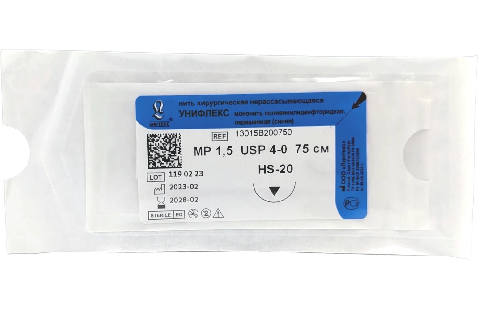 УНИФЛЕКС- мононить нерассасывающаяся, L=75см, USP 4/0, HS-20, "Линтекс"