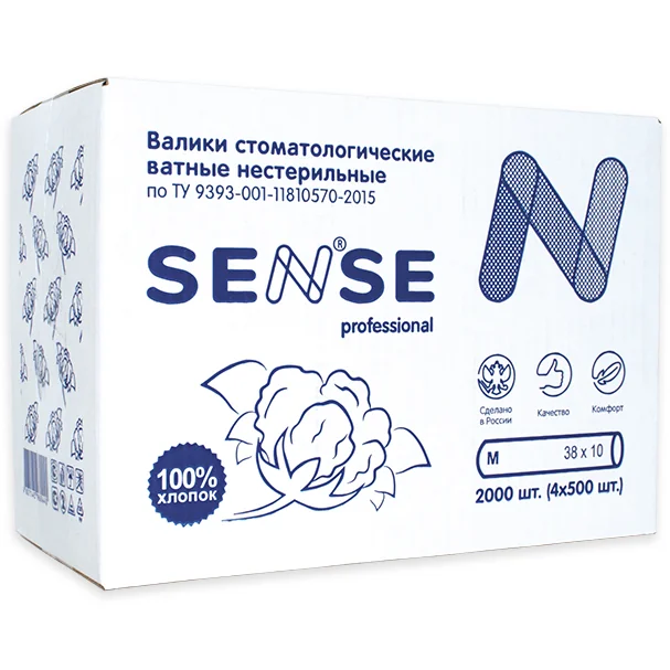 Ватные валики "SENSE professional", размер: М (38х10), 2000шт (4х500шт)