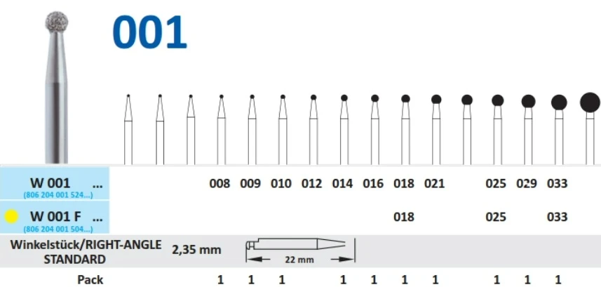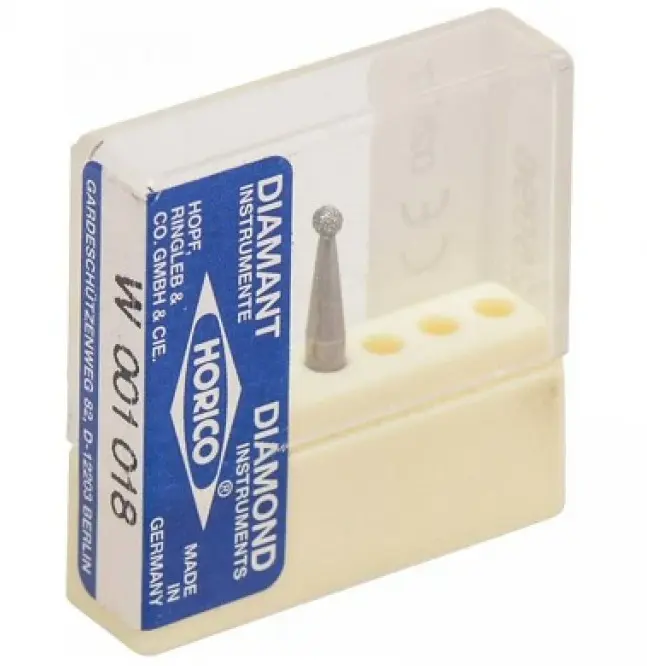 Алмазные боры на гальванической металлической связке для углового наконечника W001018.Форма бора - шар (длина рабочей части - 1,8 мм, диаметр рабочей части (1/10 мм) - 018).