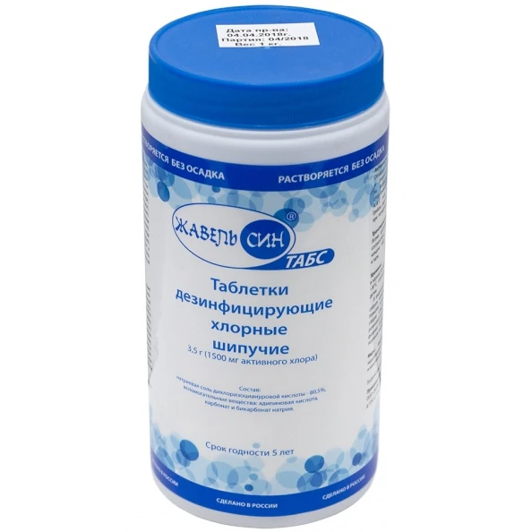 Средство представляет собой таблетки цилиндрической формы с одной фаской белого цвета с характерным запахом хлора, массой 3,6±0,3 г. В качестве действующего вещества в состав средства входит натриевая соль дихлоризоциануровой кислоты — 80,5%, а также вспомогательные вещества (адипиновая кислота, натрий карбонат и натрий бикарбонат). Массовая доля активного хлора таблетки — 1,70±0,17 г. Время растворения таблетки — не более 17 мин.